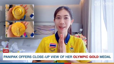 Taekwondo champ Panipak “Tennis” Wongpattanakit on Monday let fans have a close look at the gold medal she won at the Tokyo 2020 Olympics.