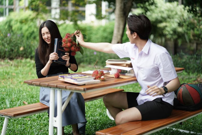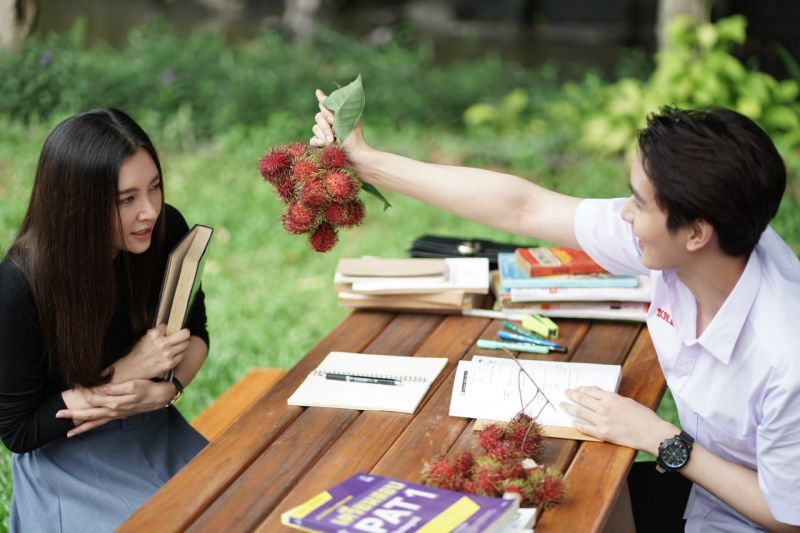 โดยทีมโบ๊ะบ๊ะน่ารักๆนี้ ทีมงานเนรมิตแต่งหล่อเปิดเหม่งให้ “กองทัพ พีค” มาในชุดนักเรียนมัธยมขาสั้น ที่เจ้าตัวออกอาการดีใจเวอร์ๆเพราะในชีวิตนี้ไม่เคยได้ใส่ชุดนักเรียนไทยสไตล์ เพราะเติบโตและเรียนที่อังกฤษมาตั้งแต่เด็กๆ ฉากนี้ยกกองไปถ่ายทำกันที่ The pudenglish garden เซ็ทฉากว่าเป็นสวนสาธารณะหวานๆ พระนาง ทิชา และ คิว กำลังนั่งติวหนังสือด้วยกัน เมื่อ คิวรู้ว่า ทิชา กลัวเงาะ ก็เลยแกล้งเอาเงาะไปวางไว้ใกล้ๆ ด้านเรื่องแอคติ้ง“เบลล่า-ราณี” หายห่วง โชว์ซีนรั่วๆกับท่าทางกลัวเงาะได้ออกมาตลกเหลือเกิน ทำเอาพระเอกรุ่นน้องแอบกลั้นขำไม่อยู่กับการแสดงระดับเทพที่ “สาวเบลล่า” ต้องเล่นไปด้วย กรี๊ดไปด้วย