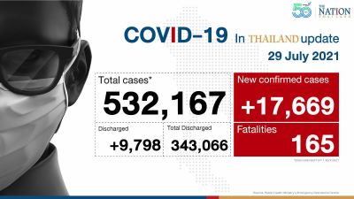 Thailand’s Covid-19 numbers soared again on Thursday with 17,669 new cases and 165 deaths, pushing the country’s total caseload to 561,030.