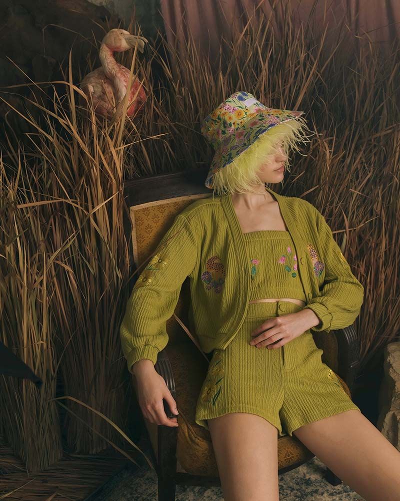 ผลงานชิ้นใหม่ล่าสุดของครีเอทีฟไดเร็กเตอร์ ออม-ดิษยา สรไกรกิติกูล นำความสง่างามน่าเกรงขามของเหล่าสัตว์ป่าและความอัศจรรย์ของธรรมชาติมาถ่ายทอด สะท้อนผ่านการพิมพ์ลายและเทคนิคงานปักอันเป็นเอกลักษณ์ของแบรนด์ คอลเลคชั่นนี้ดิษยานำเสนอมิติใหม่ของลายพิมพ์อย่างลายม้าลาย ที่เกิดจากการจัดเรียงดอกไม้นานาชนิดรวมถึงลายทุ่งหญ้าสะวันนา ผืนป่าแอฟริกันในเขตซาฟารี เสือดาวแอฟริกา และนกฟลามิงโก เมื่อผสานกับดีไซน์อันเย้ายวน หรูหรา และอ่อนหวานในแบบฉบับสาวดิษยา ปรากฏเป็นไอเทมหลากหลายที่ให้สาวๆ ได้เลือกมิกซ์แอนด์แมทช์ได้อย่างอิสระ อาทิ เสื้อเชิ้ตแขนสั้น และกางเกงขาสั้นเข้าเซต กางเกงขากระบอกเล็ก 5 ส่วน เสื้อเชิ้ตแขนยาวโอเวอร์ไซน์ โดดเด่นด้วยดีเทลการปักลายดอกไม้ตรงช่วงอก ชุดเดรสที่เพิ่มลูกเล่นผูกโบที่ปลายแขน ชายกระโปรงตกแต่งระบายด้วยพู่ ชุดเดรสสายเดี่ยว ยาวประดับดีเทลลูกไม้ และเสื้อครอปสายเดี่ยว กางเกงขาสั้น และกระโปรงเข้าเซต รวมถึงยังมีหมวกบักเก็ตดีไซน์เก๋อีกด้วย