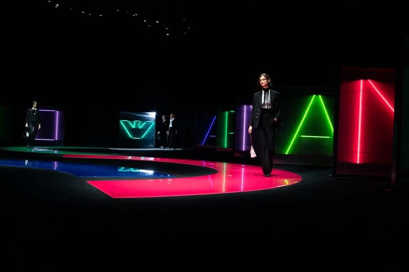 Emporio Armani ในซีซั่นล่าสุดนี้ได้รับแรงบันดาลมาจากคำศัพท์หนึ่งของ Armani อันได้แก่ เอกลักษณ์ของยุค 80s ความโดดเด่นของช่วงเวลาที่เห็นได้อย่างเด่นชัด ซึ่งถูกดัดแปลงออกมาเป็นลูกเล่นต่างๆ Emporio Armani นำลำแสงที่มากไปด้วยสีสันและเครื่องประดับที่ดูแปลกตามาใช้ เพื่อสานต่อความตั้งใจในการสะท้อนรายละเอียดระหว่างชายและหญิง การถ่ายทอดคอลเลคชั่นสำหรับทั้งผู้ชายและผู้หญิงจะมีรูปแบบเช่นเดียวกัน ซึ่งเป็นการใช้ลวดลายกราฟิกขนาดใหญ่ ดัดแปลงแรงบันดาลใจหลักเพื่อให้เกิดเสื้อผ้าสำหรับออกงานในช่วงกลางคืนที่หรูหราสง่างาม รวมถึงลูกเล่นอันคาดไม่ถึง