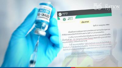 The Public Health Ministry on Saturday cancelled reservations for Covid-19 vaccine jabs via the Mor Prom application on July 30-31 due to technical issues.