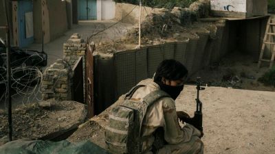 “They watch us from those houses over there,” said a commando officer, who spoke on the condition of anonymity because he was not authorized to talk to the media. He pointed out a white Taliban flag visible just a few blocks away from a traffic circle.