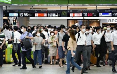 Mobile phone data from NTT Docomo, Inc. showed that foot traffic at 7 a.m. Monday decreased by 4.3% at Umeda Station in Osaka and 3.8% at Chiba Station, compared to a week ago on July 26. The percentage increased by 0.9% at Yokohama Station and slightly at Omiya Station.