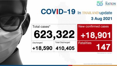 Thailand recorded 18,901 Covid-19 cases and 147 deaths on Tuesday