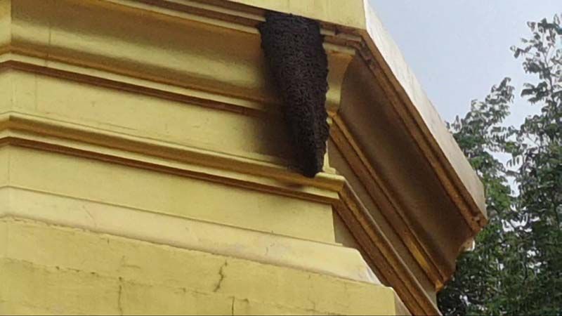 ฮือฮา! ‘ผึ้งหลวง’ แห่ทำรังรอบองค์พระธาตุโบราณอายุกว่า 1,037 ปี