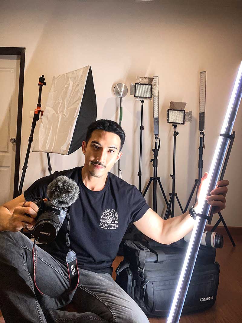 ด้าน บิ๊กเอ็ม-กฤตฤทธิ์บุตรพรม พระเอกหนุ่มจากละครรีรัน ข้ามากับพระ ซึ่งกลับมาให้ชมกันอีกครั้ง เล่าถึงกิจกรรมช่วง Work from Home ว่า “โรคระบาดนี้จะยังอยู่กับเราอีกนาน ดังนั้นเรียนรู้ที่จะอยู่และปรับตัวรับมือ อาจจะมองเห็นโอกาสใหม่ๆ ของเราได้นะครับ ซึ่งการได้อยู่บ้านนิ่งๆ ยาวนานนับเดือน ทำให้ผมได้ทบทวนวางแผนชีวิตตัวเองมากขึ้นทั้งงานเบื้องหน้าในฐานะนักแสดงและงานเบื้องหลังในอนาคตที่วางเป้าหมายเป็นผู้ผลิต ใช้เวลาช่วงนี้ศึกษา และตีความบทบาทละครที่รอถ่ายทำ ดึงความชอบดูภาพยนตร์ซีรี่ส์ มาศึกษาหาแนวทางเทคนิคการแสดงใหม่ๆ มาปรับใช้เตรียมความพร้อมรับการเปิดกองถ่ายได้ทันที นอกเหนือจากงานแสดงผมใช้โอกาสที่ตนเองชอบงานอาร์ตต่างๆ ลงเรียนเพิ่มเติมในคอร์สออนไลน์ ดูงานฝีมือจากคนเบื้องหลังเก่งๆ ทั้งเทคนิคพิเศษ กราฟิกดีไซน์ ตัดต่อ งานถ่ายทำวางมุมกล้อง จัดแสงวางไฟ จนได้ทั้งข้อมูลและอุปกรณ์ มาพลิกโฉมห้องโถงภายในบ้าน เปลี่ยนเป็นสตูดิโอย่อมๆรับผลิตงานแบบโปรดักชั่นเล็กๆ ได้เลยครับ ถือว่าเป็นการเตรียมความพร้อมวางแผนตามฝันของการทำงานเบื้องหลังในอนาคต ถือเป็นอีกช่วงหนึ่งที่แม้จะได้พักหายใจนานไปนิดแต่ก็ยังสนุกและได้พัฒนาทักษะ รู้จักขีดความสามารถของเราเพิ่มขึ้น ขอเป็นกำลังใจให้ทุกคนผ่านพ้นสถานการณ์นี้ไปพร้อมๆ กันนะครับ”