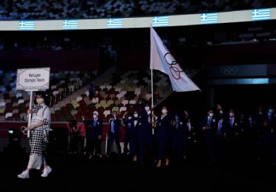 The delegation of Refugee Olympic Team parade into the Olympic Stadium during the opening ceremony of Tokyo 2020 Olympic Games in Tokyo, Japan, July 23, 2021.