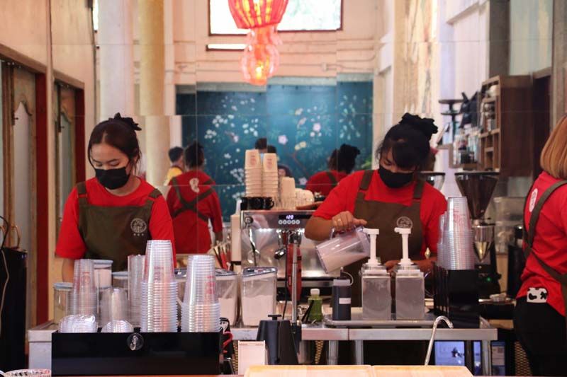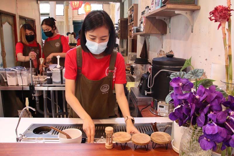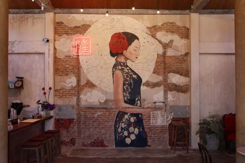 นางอรุณรัตน์ รัตนพันธุ์ อายุ 42 ปี เจ้าของร้านได้บอกว่า ส่วนตัวแล้วตนเองเป็นคนชอบงานศิลป์ ชอบบรรยากาศของร้านคาเฟ่ต่างๆ ชอบไปดูแนวการจัดร้านต่างเก็บไว้เป็นไอเดีย จนวันหนึ่งเริ่มมีความคิดว่าจะเปิดร้านกาแฟเป็นของตัวเอง โดยเอาความชอบในทุกๆแนวมารวมกันไว้ที่เดียวกัน จึงลงตัวที่เปิดคาเฟ่สไตล์จีนร่วมสมัย จึงไปคุยกับเจ้าของศาลเจ้าเทียนโหวเชียบ้อ ซึ่งเป็นศาลเจ้าเก่าของครอบครัวเพื่อนที่สนิทกัน ที่ก่อสร้างมาตั้งแต่ปี 2520 ก่อนที่จะทำพิธีสวดถอนอันเชิญเทพเจ้ากลับสู่สรวงสวรรค์แล้ว และปล่อยทิ้งร้างมายาวนานกว่า 20 ปี ตนจึงเข้าไปคุยกับเจ้าของศาลเจ้าว่าต้องการเช่าศาลเจ้าแห่งนี้มาเปิดเป็นคาเฟ่ โดยจะคงโครงสร้างเดิมของอัตลักษณ์ความเป็นศาลเจ้าให้มากที่สุด แต่จะเสริมให้เป็นจีนร่วมสมัยโดยได้รุ่นน้องวิจิตรศิลป์ มาช่วยออกแบบ และวาดรูปภายในร้านให้โดยใช้การเพิ่มเติมจากสิ่งเดิมที่มีอยู่ จึงจะเห็นได้ว่าภาพที่วาดออกมาจะเป็นแนวอาทผสมผสาน อย่างเช่นรูปที่เกิดการการกะเทาะของกำแพง ของผนัง แต่งเติมให้เป็นรูปหญิงสาวถือกาน้ำชา ซึ่งเป็นภาพวาดขนาดใหญ่ที่ผนังกลางห้องโถง เป็นจุดไฮไลน์ที่ลูกค้าชอบถ่ายรูปและเช็คอิน