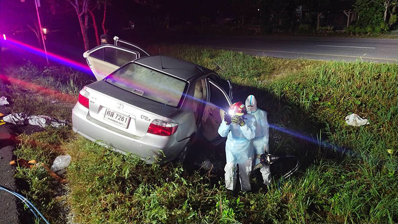 งานเข้า! กู้ภัยเมืองคอนช่วยเก๋งตกข้างทาง ตรวจพบติดเชื้อโควิดทั้งคัน