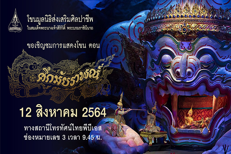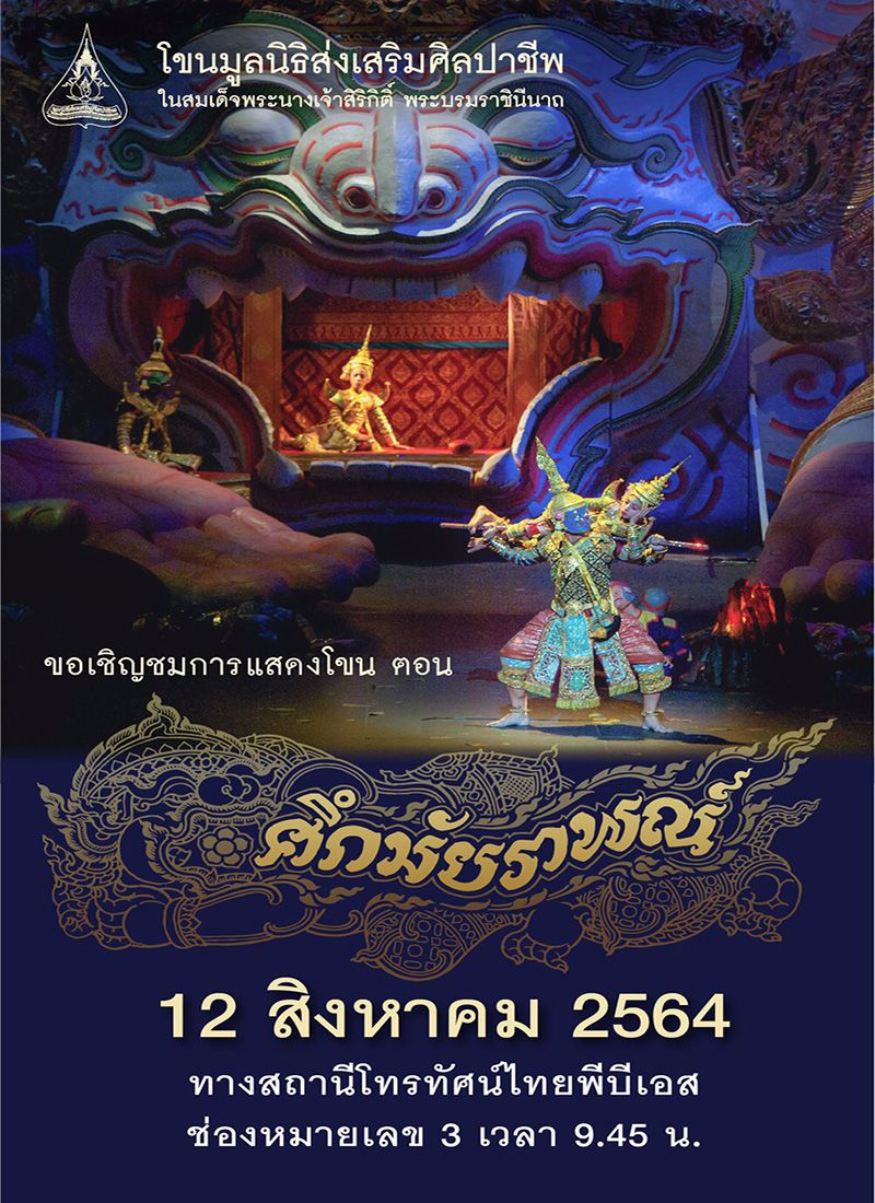 มูลนิธิส่งเสริมศิลปาชีพฯ เชิญชมบันทึกการแสดงโขน 3 ตอนสุดประทับใจ สืบมรรคา, ศึกมัยราพณ์ และศึกอินทรชิต ตอนพรหมาศ ตื่นตานาฏศิลป์ชั้นสูงถึงบ้านผ่านหน้าจอทีวี ระหว่างวันที่ 11-13 ส.ค.นี้