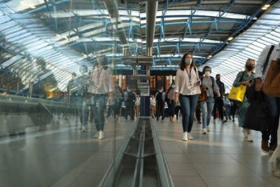 Passengers walk at Waterloo train station in London, Britain, on Aug. 5, 2021.