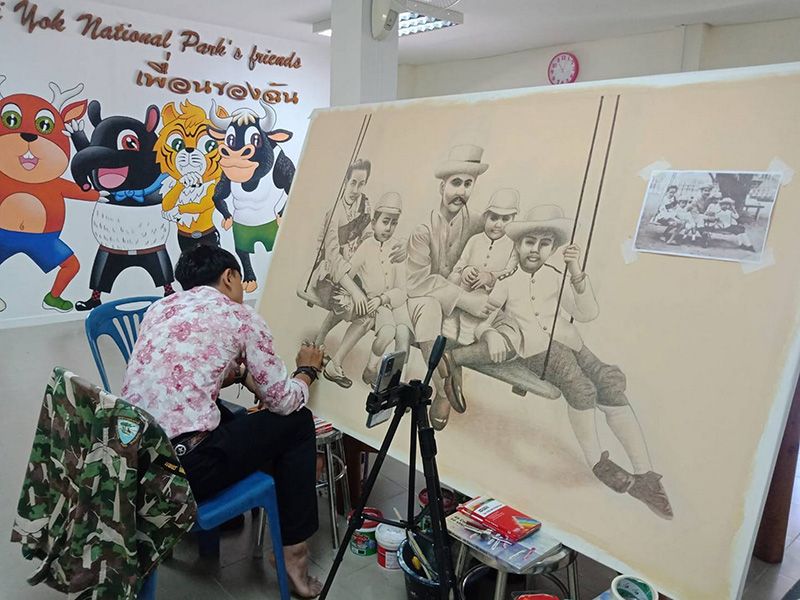 อุทยานฯไทรโยค ปรับโฉมศูนย์บริการนทท. เนรมิตเป็นจิตกรรมฝาผนัง