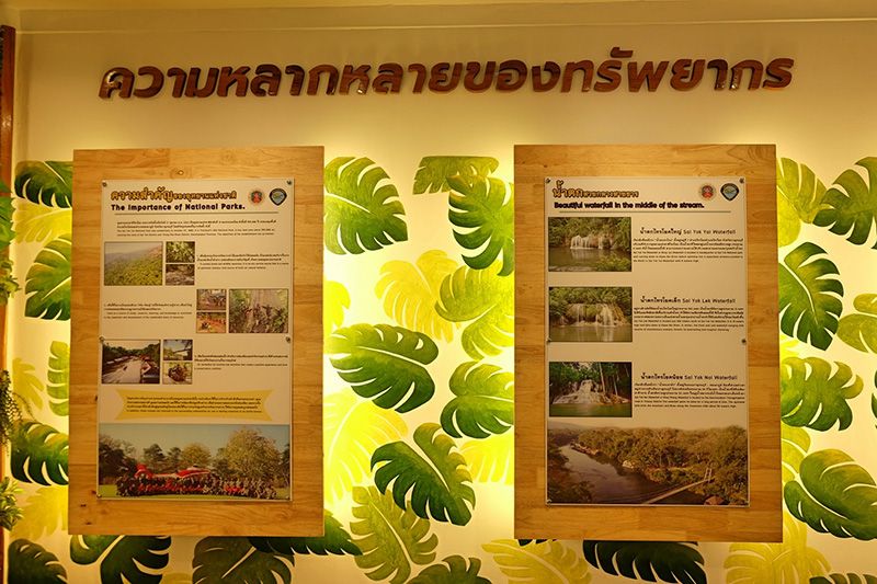 นายสมเจตน์ จันทนา กล่าวว่า อุทยานแห่งชาติไทรโยค มีความตั้งใจที่จะปรับปรุงอาคารศูนย์บริการนักท่องท่องเที่ยว จึงดึงศักยภาพของเจ้าหน้าที่มาช่วยกันคิด ช่วยกันออกแบบ แล้วลงมือทำกันเองตามความถนัดของแต่ละคน ซึ่งเป็นความโชคดีที่เจ้าหน้าที่ของเรามีความถนัดในหลายๆด้าน เช่นช่างก่อสร้างโครงสร้าง ช่างไม้ ช่างไฟ และช่างศิลป์ มีการออกแบบเนื้อหาพร้อมรูปภาพประกอบนิทรรศการ ตลอดจนการแปลภาษา เพื่อให้ศูนย์บริการนักท่องเที่ยวที่เป็นด่านหน้ารับนักท่องเที่ยวนั้น เป็นห้องนิทรรศการศิลปะฝาผนังเพื่อความสวยงาม นอกจากนี้เราได้มีการสื่อสารแบบสองภาษาเพื่อความเป็นสากลมากยิ่งขึ้น