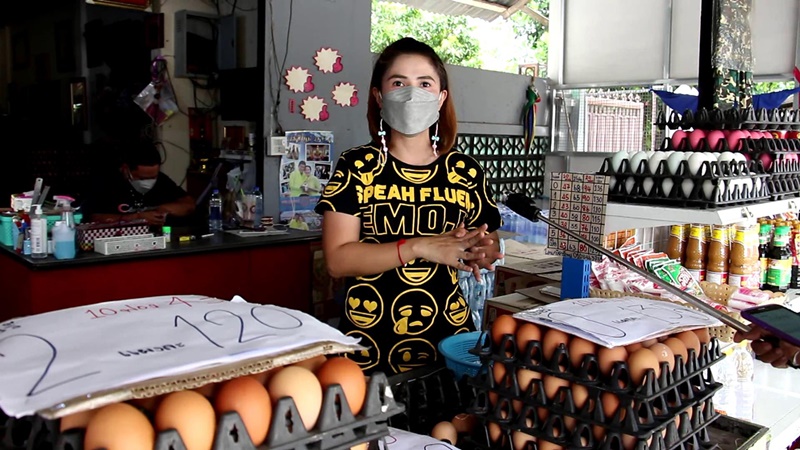 ขณะที่บรรยากาศของร้านจำหน่ายไข่ไก่ “ร้านสองชาย” ตั้งอยู่บริเวณแยกไฟแดงหลังสถานีรถไฟ ถนนคฑาธร อ.เมือง จ.ราชบุรี ของนางคมขำ เจียสุภา อายุ 36 ปี ที่มีประชาชนเดินทางเข้ามาเลือกซื้อไข่ไก่กันอย่างไม่ขาดสาย มีให้เลือกหลายเบอร์ หลายราคาตามขนาดไซต์ ลูกค้าหลายคนจะชอบเลือกซื้อไข่เบอร์ใหญ่ เช่น เบอร์ 0 ขายหน้าร้านราคาแผงละ 135 บาท เบอร์ 1 แผงละ 130 บาท ซึ่งเบอร์ 1 จะขายดีมากเป็นพิเศษ โดยราคาจะปรับขึ้นลงเล็กน้อย ตามช่วงสถานการณ์ต้นทุนที่รับซื้อมาจากฟาร์มแต่ละวัน อีกทั้งที่ร้านแห่งนี้มีไข่ให้เลือกหลายชนิด ทั้ง ไข่เป็ด ไข่เค็ม ไข่เยี่ยวม้า สินค้าบริโภคอื่น ๆ รวมทั้งน้ำดื่ม และยังรับโครงการคนละครึ่งของรัฐด้วย ทำให้เป็นที่สนใจของประชาชนเข้ามาเลือกซื้อไข่ไก่ และสินค้ากันตลอดทั้งวัน