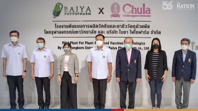 “The Public Health Ministry and National Vaccine Institute have handed a budget of 160 million baht to Chula and Baiya to establish a pilot plant to produce plant-based vaccines and biologics by transforming the 11th floor of Chulaphat 14 building [at Chula] into a 1,200 square metre manufacturing facility,” said Anutin.