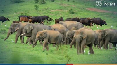 The Department of National Parks, Wildlife and Plant Conservation on Saturday published photos on its Facebook page of elephants, bulls and other animals enjoying the lush greenery and feasting on grass.