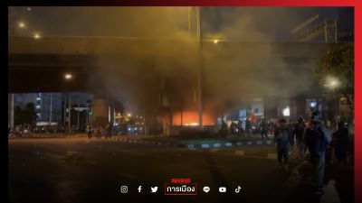 “ม็อบ15สิงหา” เผาซ้ำอีก ป้อมตำรวจดินแดง มวลชนยังปะทะกับตร.ดุเดือด