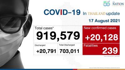 Thailand’s toll from Covid-19 hit a new high on Tuesday with 239 deaths, while new infections stood at 20,128.