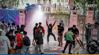 At 6pm crowd-control police were deployed at Sam Liam Din Daeng to monitor the situation. Protesters reportedly lobbed firecrackers and flares at the officers, who responded by firing tear-gas canisters to prevent the crowd from storming the barriers.