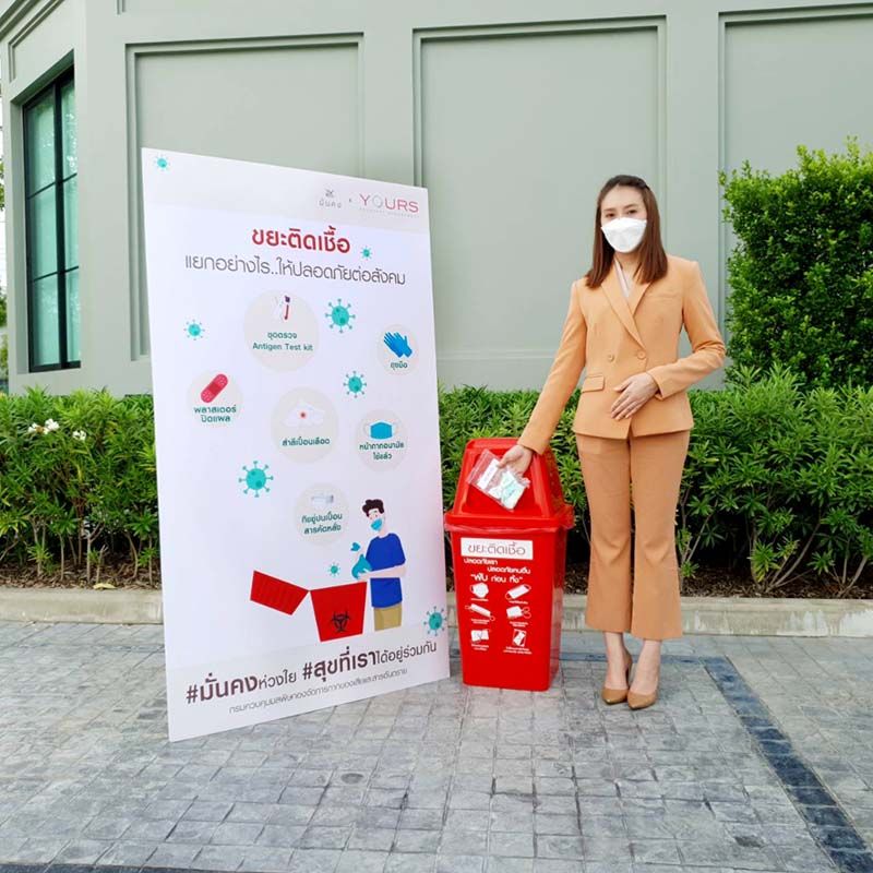และจากสถานการณ์ปัจจุบันที่มีการแพร่ระบาดของไวรัสโควิด-19 ส่งผลให้เกิดขยะติดเชื้อมีปริมาณเพิ่มขึ้นตามไปด้วย ซึ่งส่วนใหญ่แต่ละครัวเรือนมักจะทิ้งขยะเหล่านี้ปนเปื้อนกับขยะทั่วไป เสี่ยงต่อการแพร่ระบาดของเชื้อไวรัสโควิด-19และเสี่ยงต่อความปลอดภัยของพนักงานเก็บขยะด้วยเหตุนี้ บริษัทจึงได้มีการ เพิ่มระดับมาตรฐานการบริการ เพื่อร่วมกันดูแลทุกคนให้ปลอดภัยมีสุขอนามัยที่ดี โดยได้ร่วมกับ บริษัท ยัวร์สพร็อพเพอร์ตี้ แมเนจเม้นท์ ซึ่งเป็นบริษัทในเครือที่ให้บริการด้านการบริหารจัดการอาคารและที่พักอาศัย พร้อมให้บริการกับโครงการบ้านต่างๆ ดำเนินการติดตั้งจุดทิ้งขยะติดเชื้อ สำหรับทิ้งหน้ากากอนามัยใช้แล้วและขยะติดเชื้อประเภทอื่นๆ ให้แก่ลูกบ้านกว่า20 โครงการ และที่สำนักงานใหญ่ พร้อมทั้งให้ความรู้และรณรงค์เรื่องคัดแยกขยะภายในบ้าน การทิ้งหน้ากากอนามัยอย่างถูกต้อง รวมถึงการทิ้งขยะติดเชื้อประเภทอื่น พร้อมรายงานสถานการณ์การแพร่ระบาดของเชื้อไวรัสโควิดอย่างต่อเนื่อง ผ่านช่องทางประชาสัมพันธ์ ของโครงการ