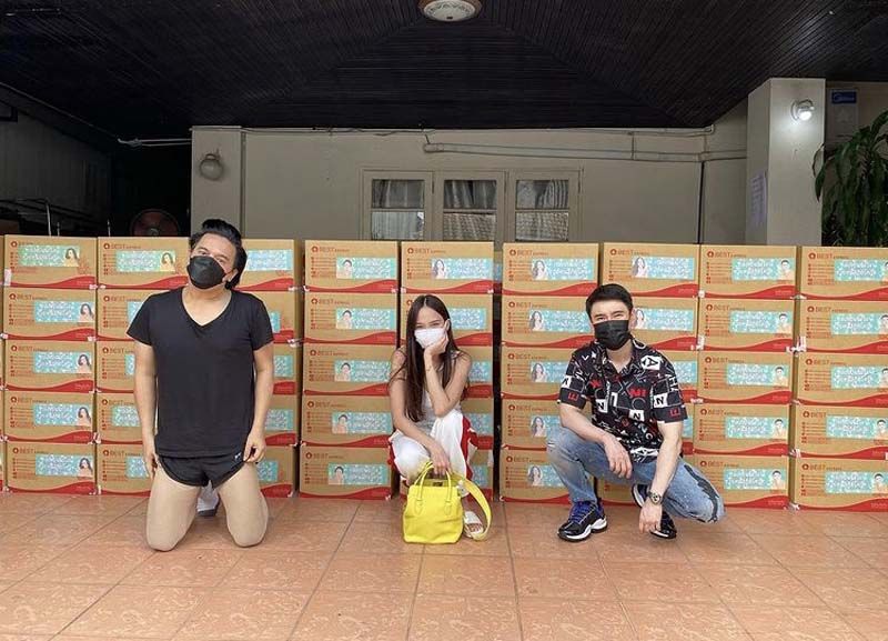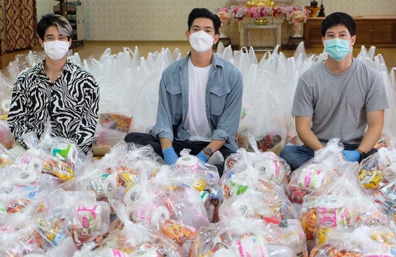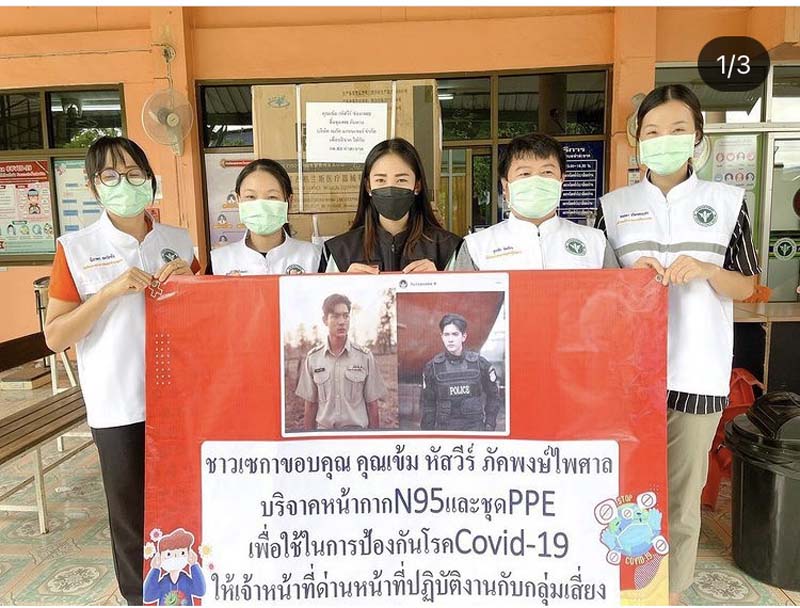 เริ่มกันที่นางเอกซูเปอร์สตาร์อั้ม-พัชราภา ไชยเชื้อ ส่งมอบเครื่องให้ออกซิเจน High Flow เพื่อช่วยผู้ป่วยโควิด-19 ให้กับโรงพยาบาลพุทธโสธร จ.ฉะเชิงเทรา และโรงพยาบาลดำเนินสะดวก จ.ราชบุรี และยังคงเดินหน้าช่วยเหลือสังคมอย่างต่อเนื่อง ล่าสุดจับมือกับเพื่อนๆ และผู้จัดละครชื่อดัง เอ-ศุภชัย ศรีวิจิตร จัดทำกล่องปันน้ำใจ2,000 ชุด ส่งให้ผู้ที่ได้รับความเดือดร้อนจากสถานการณ์โควิด-19 โดยกระจายทั้งทางออนไลน์ รวมทั้งชุมชนในกรุงเทพฯและปริมณฑล ด้านพระเอกดัง อ๋อม-อรรคพันธ์ นะมาตร์ นำอาหาร ของใช้จำเป็นมอบแก่โรงพยาบาลธรรมศาสตร์เฉลิมพระเกียรติ ส่วนพระเอกสุดฮอต ไมค์-ภัทรเดชสงวนความดี ส่งอาหารกล่องกว่า 300 กล่อง ให้กับแคมป์คนงาน ที่เขตพญาไท ซอยอินทามระ 12