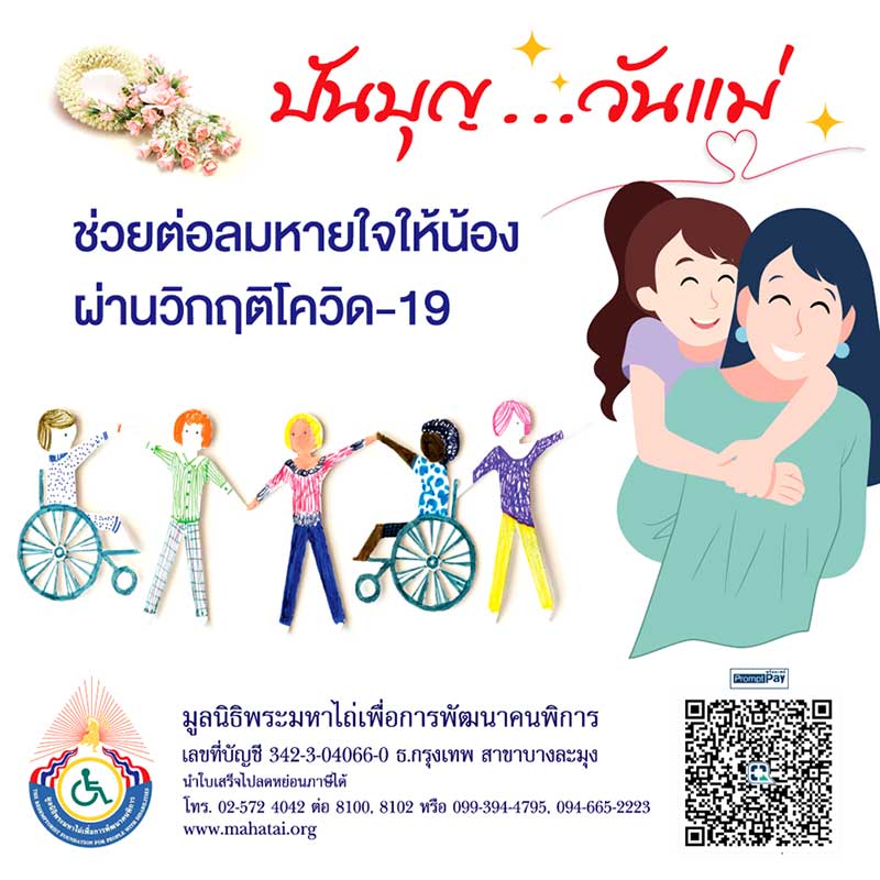 เดือนสิงหา-วันแม่ปีนี้ จึงอยากเชิญชวนให้ลูกๆ ได้บริจาคช่วยเหลือผู้พิการกับทางมูลนิธิฯเพื่อร่วมทำบุญตอบแทนความรักที่มีต่อคุณแม่ เนื่องจากมีสถาบันศึกษาในการดูแลเป็นการให้บริการแบบประจำที่มูลนิธิฯ ต้องดูแลทั้งเรื่องที่พัก อาหาร การจัดการศึกษาและกิจกรรมอื่นๆ ที่เกี่ยวข้อง อีกทั้ง คนพิการส่วนใหญ่มีฐานะยากจน นักเรียนและนักศึกษาซึ่งเป็นคนพิการทั้งสิ้น รวมทั้งบุคลากรและครูกว่า 800 คน ซึ่งทั้งหมดมูลนิธิฯ ได้จัดการศึกษาสำหรับคนพิการสู่การมีงานทำที่มีคุณค่าอย่างยั่งยืนโดยไม่คิดค่าใช้จ่าย เพื่อให้บริการช่วยเหลือคนพิการในทุกมิติหรือทุกเรื่อง เพื่อให้พวกเขามีอาชีพและช่วยเหลือตัวเองได้อย่างยั่งยืน