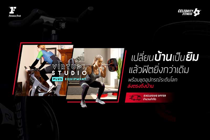 สร้างสุขภาพดีด้วยตัวเองที่บ้านได้เลยตอนนี้ที่ “Virtual Studio” ผ่านแอปพลิเคชั่นบนหน้าจอมือถือของคุณได้แล้วที่ Application “Fitness First Asia” และ“Celebrity Fitness Asia” ทั้ง IOS และ Android หรือดูข้อมูลเพิ่มเติมได้ทาง www.fitnessfirst.co.th, www.facebook.com/FitnessFirstThailand, www.celebrityfitness.co.th, www.facebook