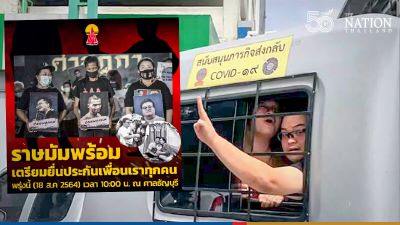 Pro-democracy activists headed to the district court in Thanyaburi, Pathum Thani on Wednesday morning to submit bail requests for Parit “Penguin” Chiwarak and other Ratsadon members who have picked up Covid-19 in jail.