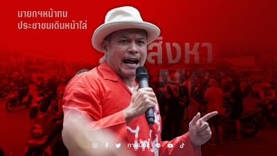โดยระบุข้อความว่า นายกฯหน้าทน ประชาชนเดินหน้าไล่