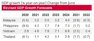 “We have revised our 2021 growth forecast for Thailand lower to 1.1 per cent from our June forecast of 2.8 per cent. The current Covid-19 escalation in Thailand is the most severe so far, after the country had successfully limited the spread in 2020.