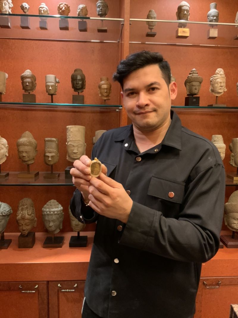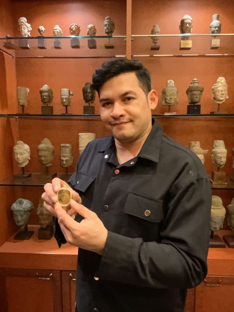 โดย “คุณอัศวิน ทองประเสริฐ” เผยว่า “ที่ชอบสะสมเครื่องราง เพราะว่าผมอยู่กับวัด เป็นเด็กวัด ตายายเลี้ยง และพอดีคุณพ่อบุญธรรมผม คือ คุณหมอสมหมาย ทองประเสริฐ ท่านสอนให้เราเป็นคนดีอยู่แล้ว ด้วยหลักทางพุทธศาสนาก็จะมีเครื่องรางเป็นที่ยึดเหนี่ยวจิตใจด้วย ไม่ว่าจะเป็นพระเครื่อง หรือ เครื่องราง ผมไม่เก่งนะ ตอนที่เราเล่นๆ ก็โดนเยอะเหมือนกัน แต่ผมได้อาจารย์ดี อาจารย์ของผมคือคุณ พยัพ คำพันธุ์ เป็นอาจารย์ที่สอนผมเกี่ยวกับเรื่องเครื่องราง และก็การดูพระทุกอย่าง 10 กว่าปีที่อยู่กับท่านมา ผมก็ได้ความรู้พอสมควร และได้ของดีมาเก็บไว้กับตัวเยอะ ที่ผมติดตัวตลอดคือหลวงปู่ศุข และ 5 อย่างที่มีอยู่ในบ้าน งาช้างสีดำ, เขี้ยวหมูตัน, เขากวางคุด, เขี้ยวเสือกลวง และ งากำจัด-งากำจาย ใครทีอยู่บ้านไม่ว่าจะคุณไสยอะไรในโลกนี้ก็ทำอะไรไม่ได้ และสิ่งที่คุณตามหาอยู่ก็มีอยู่ที่นี้ คือ ปั้นเหน่งแม่นาค นอกจากนั้นก็มีดหมอ มีดครู และอีกหลายอย่าง ซึ่งของทั้งหมดที่มีผมไม่เคยขาย เพราะผมคิดว่าของที่อยู่กับผม เป็นของที่สุดอยู่แล้ว ปกติผมไม่ค่อยบอกใครว่าผมมีอะไร ที่ผมเก็บไว้ทุกวันนี้จะเอาคืนให้ชาติ นี่คือสิ่งที่ผมตั้งใจเอาไว้”