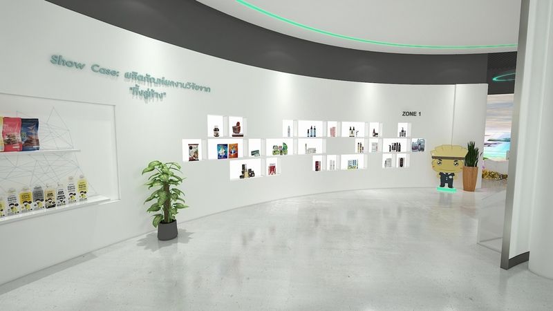 โซนที่ 1 ผลิตภัณฑ์ผลงานวิจัยจาก “หิ้งสู่ห้าง” มากกว่า 20 ผลิตภัณฑ์ ที่มีการผลิตและจำหน่ายจริง อาทิ เครื่องสำอางชะลอความชราจากข้าว เครื่องดื่มข้าวสินเหล็ก ผลิตภัณฑ์ไล่ยุงและแมลง ผลิตภัณฑ์เส้นบุก เครื่องสำอางจากดอกไม้สีเหลือง และเครื่องสำอางจากน้ำมันปาล์มแดง เป็นต้น