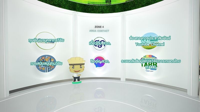 โซนที่ 4 การให้บริการข้อมูลของ สวก. (ARDA Contact) ได้แก่ การสนับสนุนทุนวิจัย ทุนพัฒนาบุคลากรวิจัย ระบบคลังข้อมูลการวิจัยการเกษตรไทย (TARR) ช่องทางสื่อประชาสัมพันธ์ และช่องทางการติดต่อ สวก.