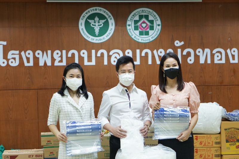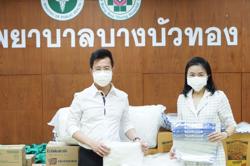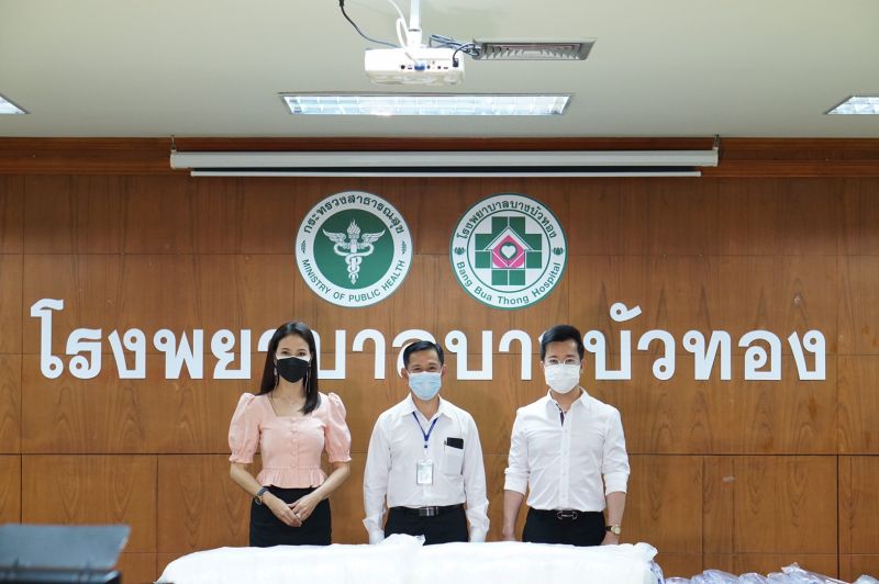 นายแพทย์พุฒิพงศ์ ภูมิสุวรรณ ผู้อำนวยการ AIC Clinic เข้ามอบ ชุด PPE และของอุปโภค บริโภคให้กับ นายแพทย์ประพุทธ ลีลาพฤทธิ์ ผู้อำนวยการโรงพยาบาลบางบัวทอง เพื่อนำไปใช้กับผู้ป่วยที่โรงพยาบาลสนามในการดูแลของโรงพยาบาลบางบัวทอง โดยมี เงาะ-กชกร นิมากรณ์, พญ. ช้องมาศ เลิศสิน, เพ็ญศรี นิมากรณ์, ดร.วโรดม ศิริสุข, ธีร์-ณธีพัฒน์ ถิระไชยบูลย์ และท๊อด-สุทธิพงษ์ นาคแดง ร่วมบริจาคในครั้งนี้ ที่ห้องประชุมสัตตบงกช อาคาร 3 ชั้น 3 โรงพยาบาลบางบัวทอง