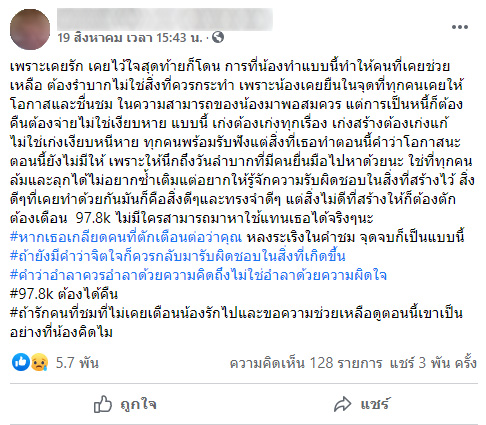 ปล. ทำใจไม่ได้จริง ๆ รับตัวเองไม่ได้เลย กว่าจะมีจิตใจออกมาพูด ขอโทษจากใจ ที่เป็นส่วนหนึ่งในเหตุการณ์ที่ไม่น่าให้อภัยนี้”