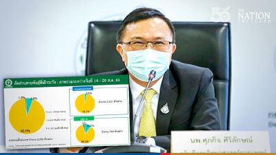 Dr Supphakit Siriluck, the department’s director-general, said its latest weekly survey of new cases from August 14-20 showed that 2,132 out of 2,295 samples (92.9 per cent), were infected with Delta, formerly known as the Indian strain.