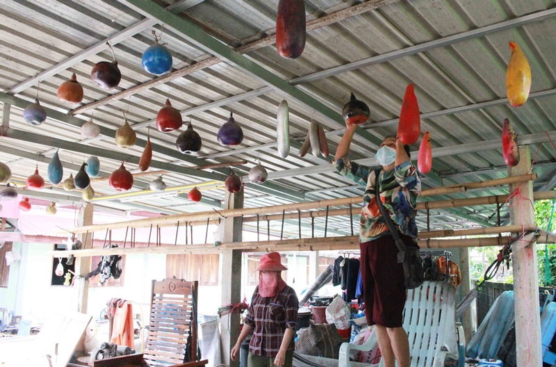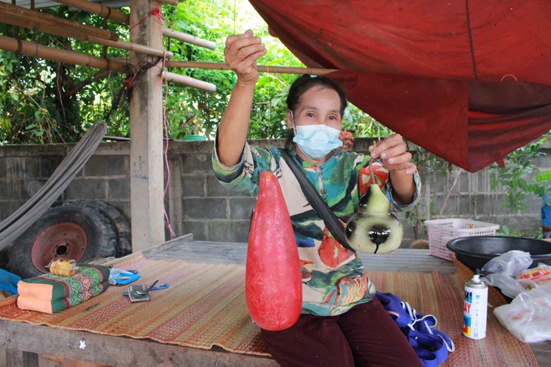 แม่ค้าเมืองน้ำดำไอเดียเก๋เพ้นท์สีน้ำเต้าประดับร้านเรียกลูกค้า
