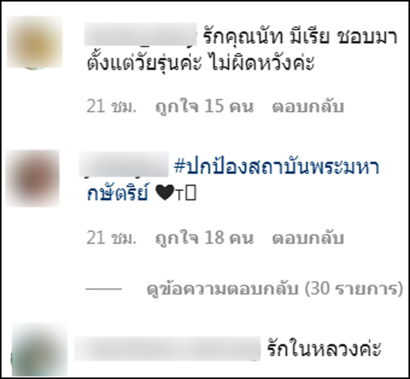 เชื่อว่าทุกท่านมีจิตใจที่สวยงามกันทุกคน ลองใช้ใจที่สวยงามของทุกท่านมองในสิ่งที่ดีงาม วันนี้และทุกวันของนัทเทิดทูนพระองค์ท่าน ชาวโลกต่างยกย่องพระองค์ท่าน และได้มอบรับรางวัลอันทรงเกียรติระดับโลกถึง 13 รางวัลให้พระองค์ท่าน ซึ่งหาใครที่เป็นแบบนี้ได้ยาก นัทก็เป็นคนนึงที่ภูมิใจในความเป็นไทยเสมอ มีบางอย่างที่ต้องปรับปรุงแก้ไขก็ต้องใช้สติแยกแยะกันไปนะคะ แค่เรานึกถึงและภูมิใจกับบุคคลอันควรก็แค่นั้นเองค่ะ ไม่หลงประเด็นนะคะคนดี คนไทยเราต้องรักกันนะคะ ”