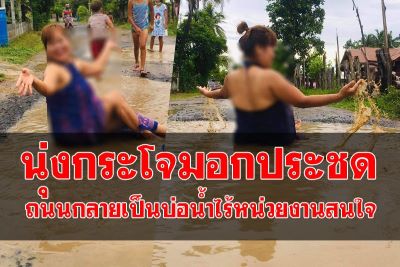 ชาวบ้านสุดทนถ่ายคลิปนุ่งกระโจมอกอาบน้ำและเด็กเล่นน้ำกลางถนนชำรุดเป็นหลุมขนาดใหญ่มีน้ำขังโพสต์เฟสประชด หวังให้หน่วยงานที่เกี่ยวข้องเข้ามาดูแลแก้ไข เผยถนนมีสภาพชำรุดเป็นหลุมเป็นบ่อสัญจรลำบากมานานกว่า 10 ปี ร้องขอให้ช่วยเหลือซ่อมแซมหลายครั้งแค่รับปากก็เงียบหาย