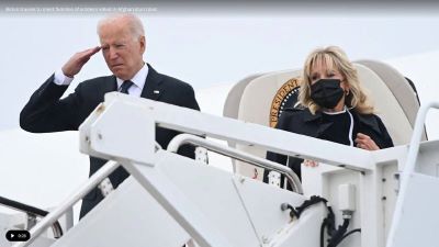 The president spoke to the relatives of the troops, who were killed in last week’s airport bombing, and participated in a “dignified transfer” – in which the remains of fallen service members are returned to the U.S. in flag-draped cases.