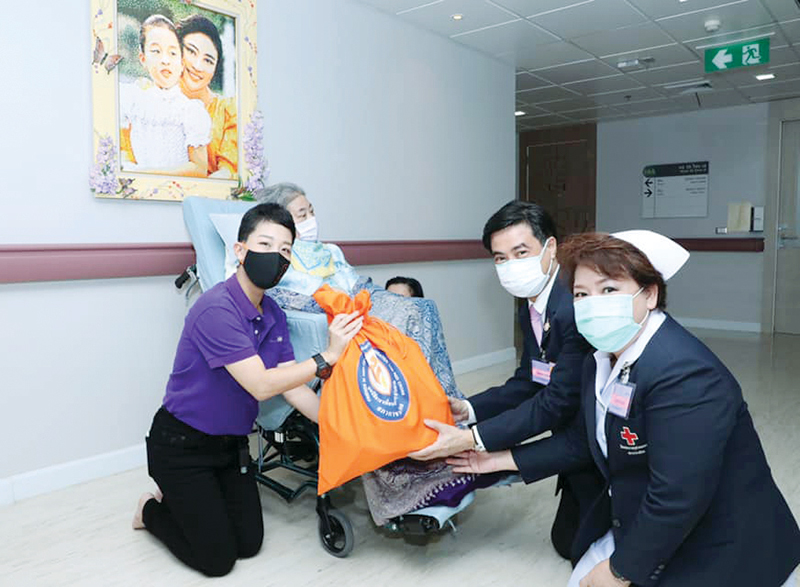 ศ.นพ.สุทธิพงศ์ วัชรสินธุ ผอ.รพ.จุฬาลงกรณ์ สภากาชาดไทย และ เฉลาศรี เสงี่ยม หัวหน้าพยาบาลรพ.จุฬาฯ รับพระราชทานถุงน้ำใจพึ่งพา (Help Me Bag)
