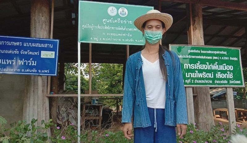 สาวประเทสองหัวใจเกษตร ลงแรงลงใจลงมือทำด้วยใจรักเกษตรทำเกษตรให้เป็นเกษตรยุคใหม่ แหล่งเรียนรู้การเกษตรแบบผสมผสานทั้งพืชสัตว์ประมง ที่บ้านสวนหลวง หมู่ 2 ตำบลปงป่าหวาย อำเภอเด่นชัย จังหวัดแพร่