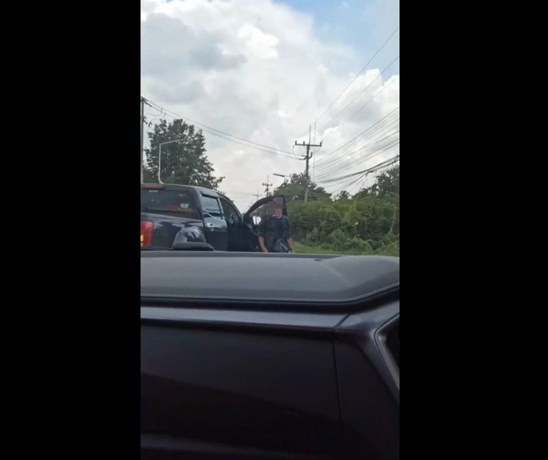 สักพักก็จะเหลือแค่ 2 เลนสวนกัน มีรถบรรทุกข้างหน้าขับช้า รถคู่กรณีต่อท้าย รถผมก็ไปต่อท้ายรอแซง สักพักเขาหลบซ้ายจนแทบตกถนน ผมก็ยังพูดกับแฟนว่าสงสัยเมียคงด่าเพราะขับรถเร็ว พอรถว่างผมก็แซง รถเขาก็ขับตามมาพอเหลืออีกกิโลกว่าๆ ผมก็เลี้ยวซ้ายเข้าซอยเพื่อที่จะเข้าบ้านลูกค้า พอขับไปได้ร้อยกว่าเมตรเขาก็แซงพอแซงไปได้ก็เบรกรถขวางรถผม จากนั้นก็เป็นตามคลิปถือไม้เบสบอลลงมาจะฟาด จะให้ผมยอมรับให้ได้ว่าผมตามจี้รถเขา ผมไปส่งลูกปลาเป็นสิ่งมีชีวิตไปถึงลูกค้าไวก็ยิ่งดีใช่ไหมครับ