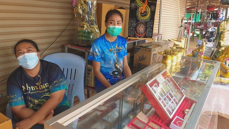 ส่วนบริเวณถนนหน้าเกาะคำชะโนดก็ยังพอมีบรรดาพ่อค้าล็อตเตอรี่และแม่ค้าขายของที่ระลึกให้แก่ประชาชนที่ยังคงเดินทางมาบ้างเป็นประปราย โดยแม่ค้าขายของที่ระลึกบอกว่า ได้รับผลกระทบตั้งแต่ปิดคำชะโนดตั้งแต่เดือน มี.ค.และ เม.ย.64 ที่ผ่านมา แต่ก่อนตนเองขายของด้านหลังพระประธานวัดศิริสุทโธ พอคำชะโนดถูกสั่งปิดก็ออกมาขายข้างนอก ขายไม่ได้เหมือนแต่ก่อนแต่ก็มีช่องทางขายออนไลน์ เราก็ส่งของระลึกเกี่ยวกับคำชะโนดไปให้ลูกค้า แม่ค้าขายของที่ระลึกบอกอีกว่า หลังคำชะโนดปิดเราก็ขายของไม่ได้เพราะส่วนใหญ่เป็นนักท่องเที่ยว แต่ทั้งนี้เราก็พร้อมจะปฏิบัติตามเพื่อป้องกันโควิด