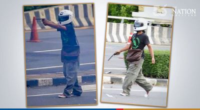 The teenager reportedly said that the gun he brandished at the rally was a Thai-made one with no bullets, and that he only meant to threaten the police to stop “harming” the protesters.