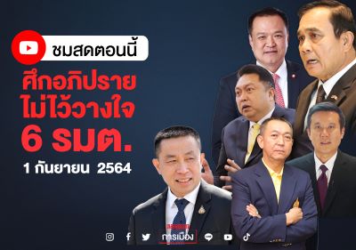 Live! 1 ก.ย. 2564 ถ่ายทอดสด ชมสดอภิปรายไม่ไว้วางใจ 2564 จับตาศึกซักฟอก 6รมต.