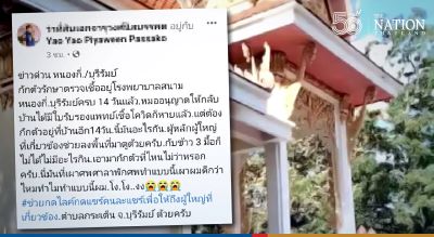 Facebook user “Acting Sergeant Jaruwong Nilbunpot”, who is a part-time rescue volunteer in Bangkok, posted a message and a video clip about his isolation in Buri Ram’s Nong Ki district.