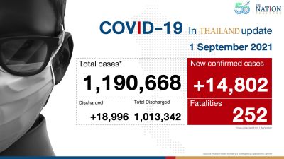 Thailand logged 14,802 new infections and 252 deaths over the past 24 hours on Wednesday. Of the new infections, 217 were found in prisons.