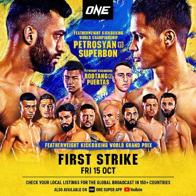 In the main event, living legend and #1-ranked ONE featherweight kickboxer Giorgio Petrosyan faces #2-ranked Superbon for the inaugural ONE Featherweight Kickboxing World Championship. In the co-main event, Muay Thai megastar Rodtang Jitmuangnon continues his quest for striking supremacy when he takes on Daniel Puertas in a flyweight kickboxing bout.